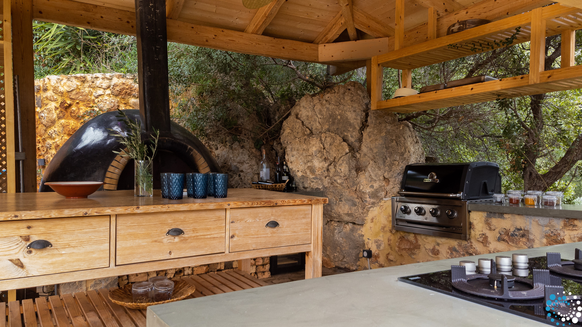The villa, a typical example of Mediterranean architecture, stands out for its structural composition with elements such as stone, wood and mortar prevailing everywhere. The furniture, inside and outside the villa, made of wood, will excite you in every way, designed with modern minimal aesthetics, creating the conditions for a comfortable living throughout your stay.