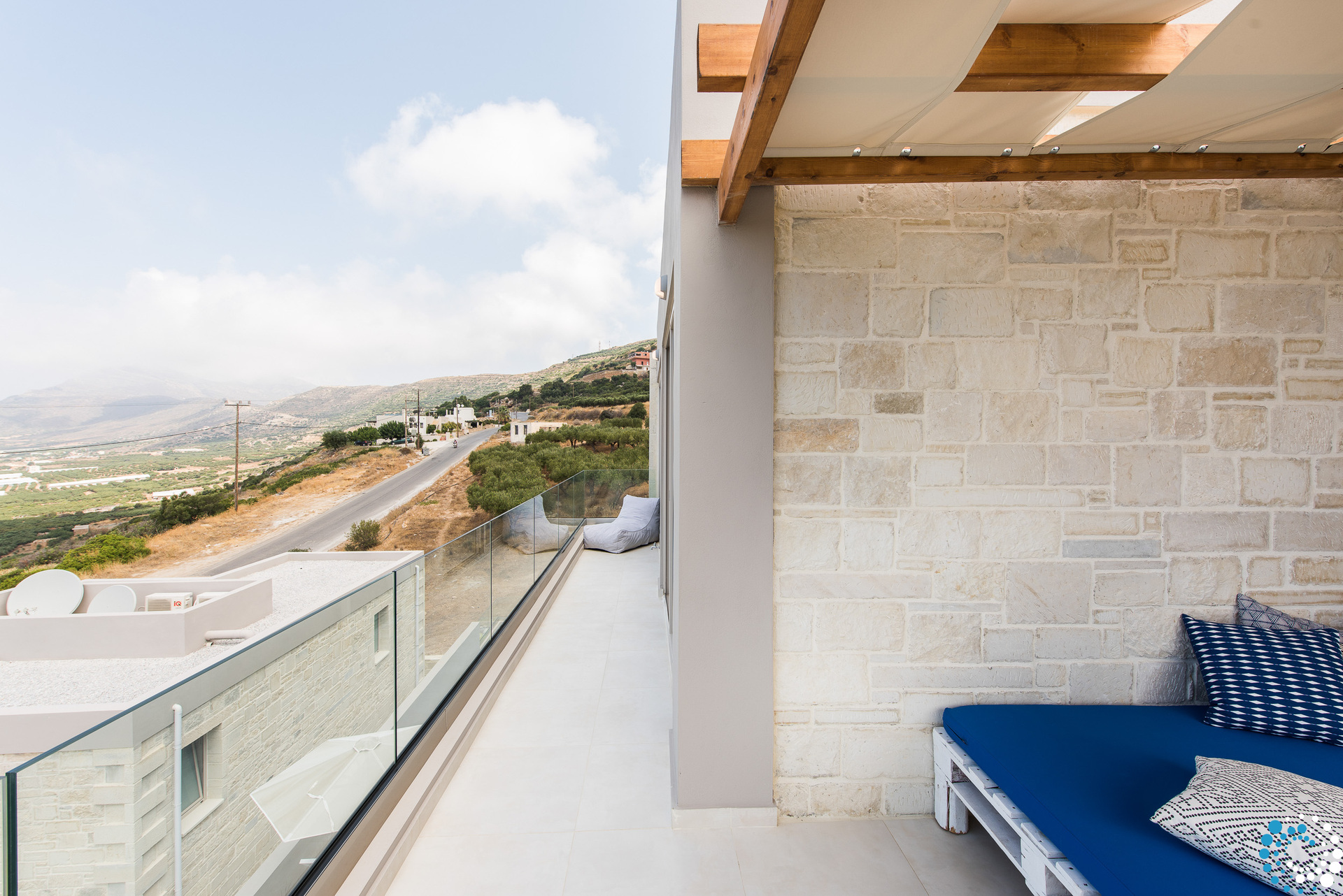 Villa Lassi, built on two floors, is close to perfection and comfort. The interior decoration and furnishing are combined with modern stone creating an elegant and cosy atmosphere. Upon entering the villa from the ground floor an open plan space welcomes you with a fully equipped kitchen, a living room with a fireplace, and a dining area. Large windows allow plenty of sunlight to get into. The floor has also a bedroom and two bathrooms, one of them is ensuite. Just a few steps above lead to the four bedrooms with private balconies. Each bedroom has an ensuite bathroom. One bedroom with a double size bed is located on the ground floor with an ensuite bathroom with a shower. The rest bedrooms are located on the first floor two with double-size beds and two with twin-size beds with ensuite bathrooms and a balcony with a sea view.