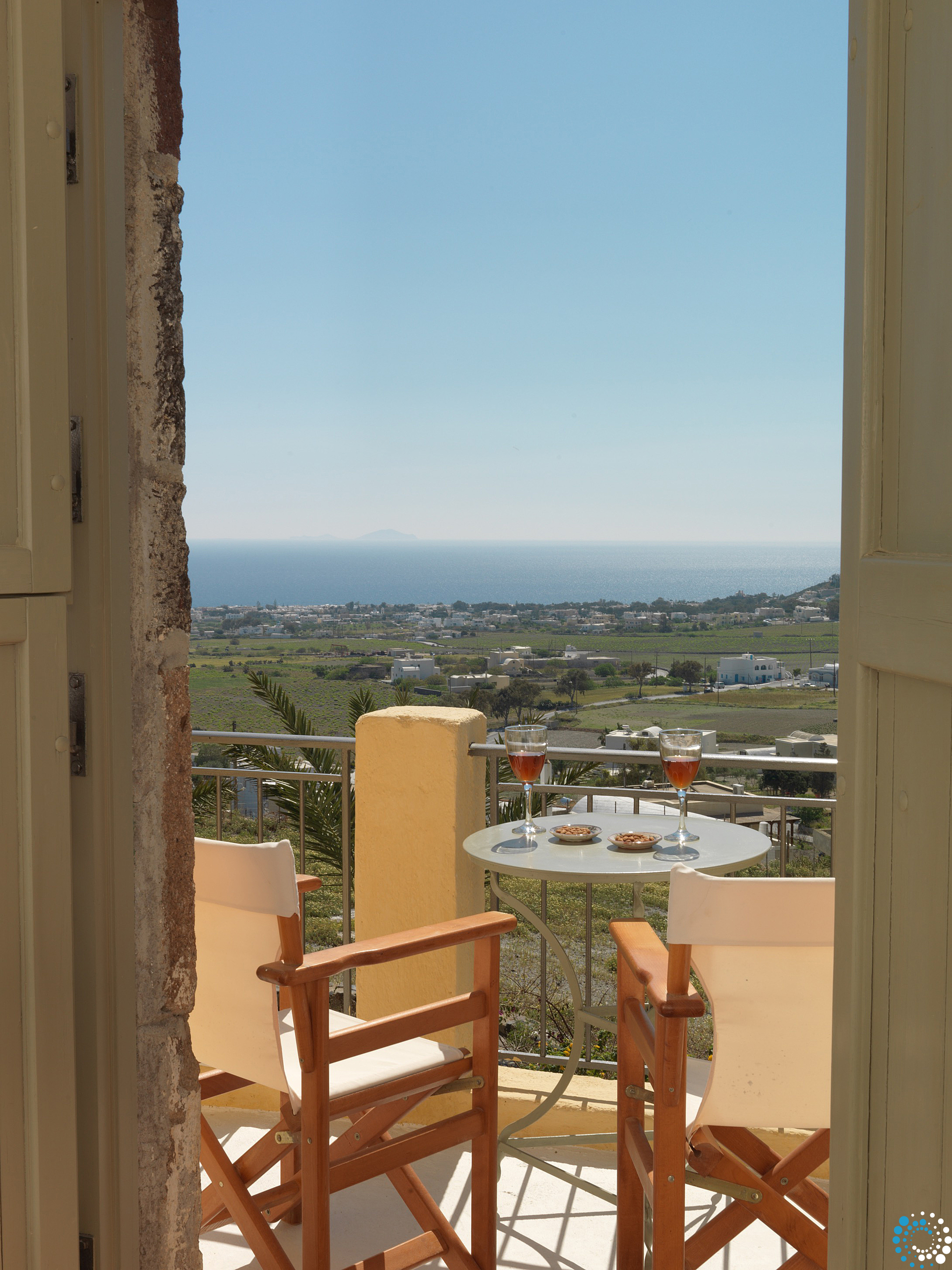 Villa Miel is a 30m2 open plan room with beautiful views from any part you will stand and becomes a lovely spot to enjoy your stay in Santorini. The private balcony with the unobstructed view to the sea and the imposing mountain is a charming place to spent hours enjoying the magnificent nature of Santorini island.