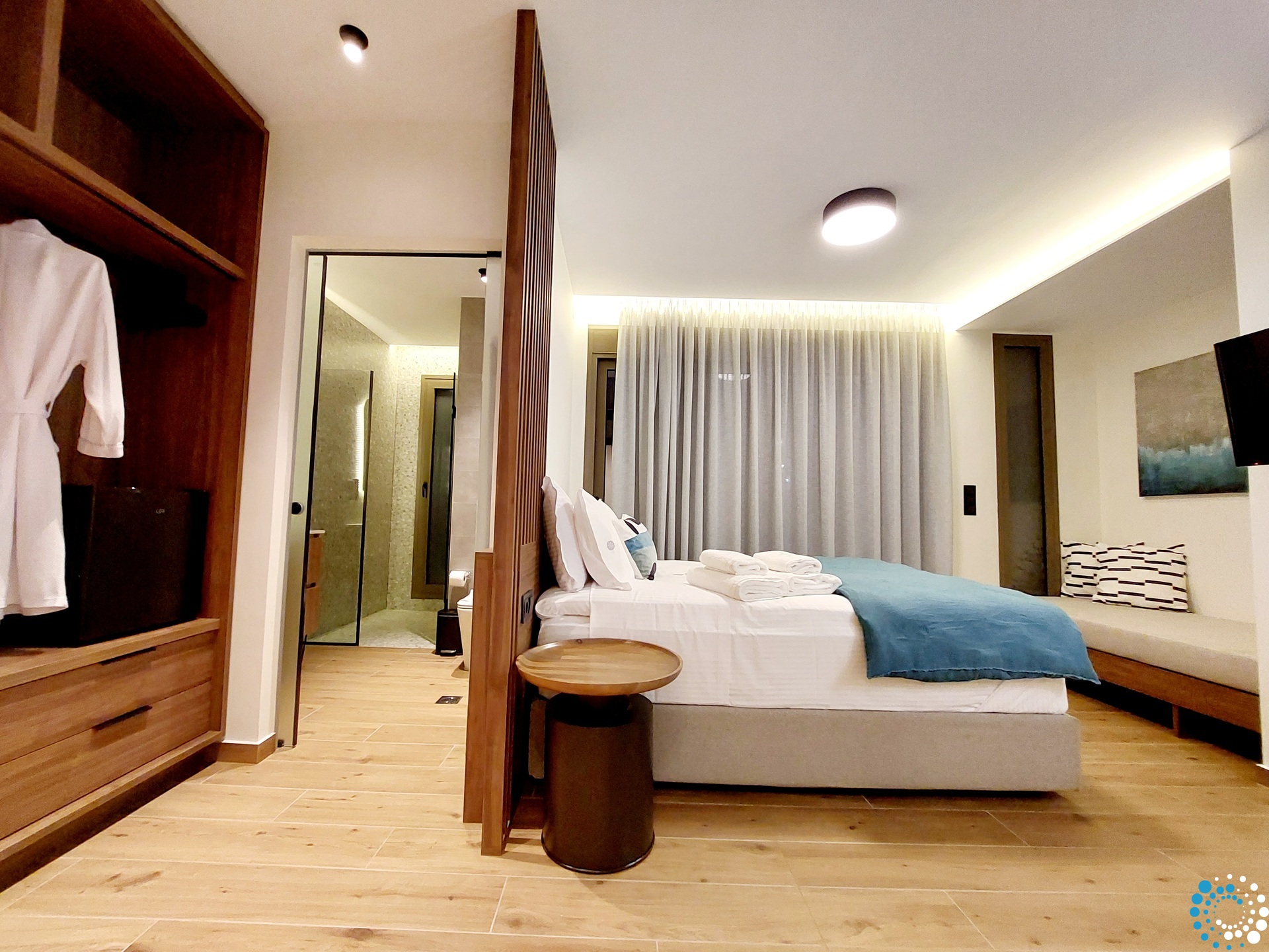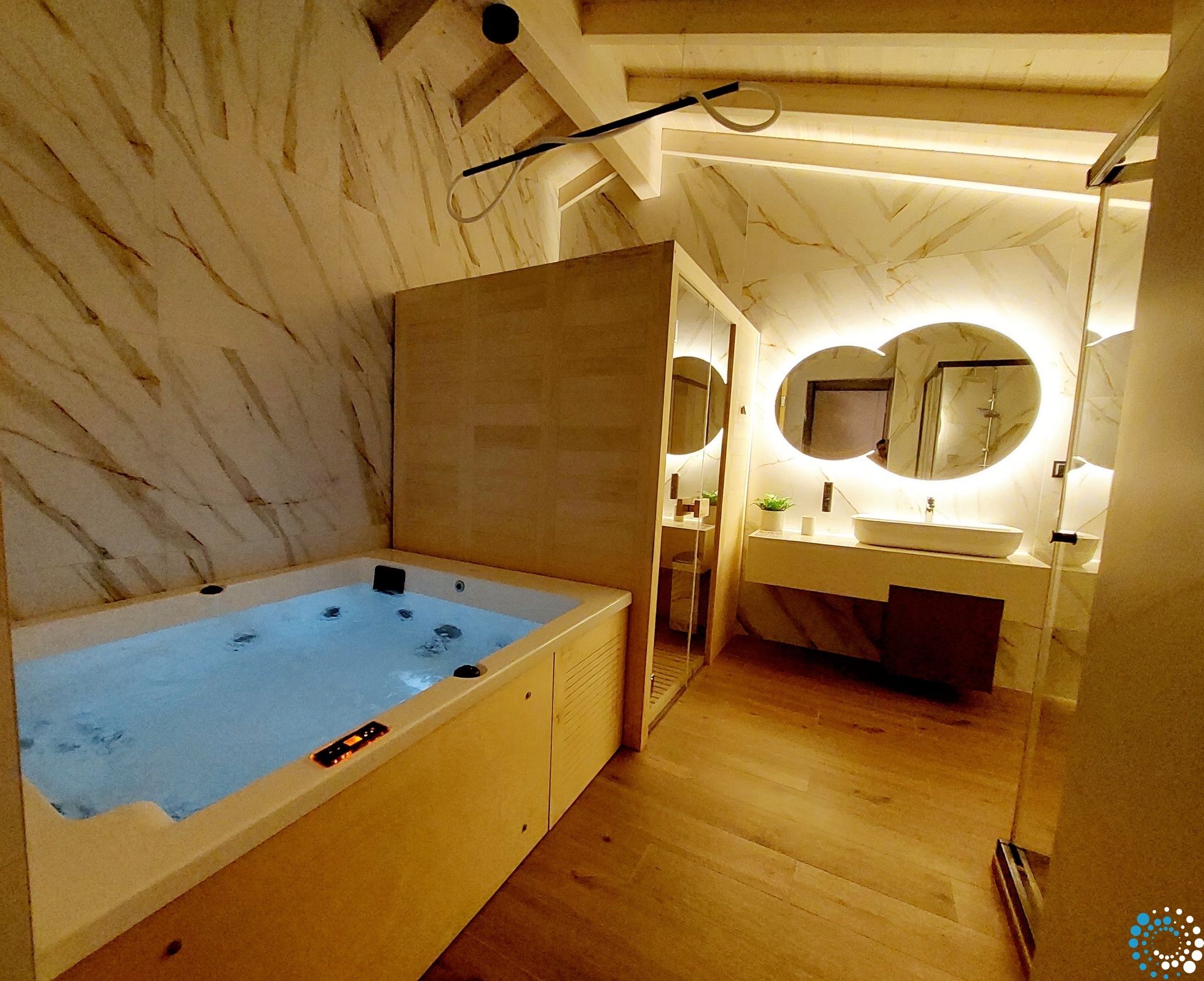 When you stay in one of our villas, you'll have access to your very own private spa facilities, complete with a sauna and hydromassage tub. This will allow you to enjoy some truly unforgettable moments of relaxation. Each villa has its own private swimming pool that is equipped with the environmentally friendly technology called ecopool. The pools use salt water instead of chloride and may be heated (from April to October). The villas have been designed to reduce their impact on the environment and are entirely powered by renewable energy sources. Guests can enjoy a relaxing and eco-friendly vacation while also taking advantage of the many outdoor activities available nearby, such as hiking, cycling, and exploring the local wildlife. The villas are conveniently located within easy reach of restaurants, shops, and other amenities. With a range of modern amenities and eco-friendly features, these villas offer the perfect blend of luxury and sustainability for an unforgettable vacation experience.