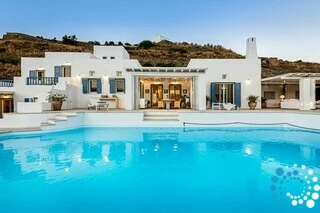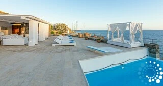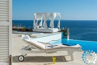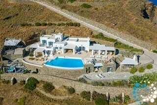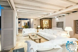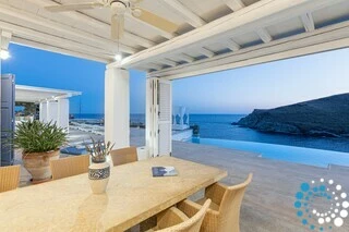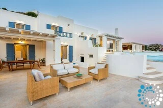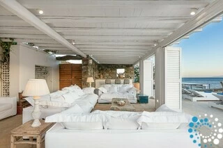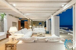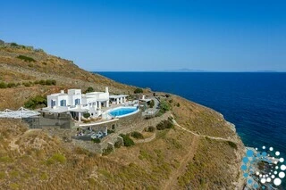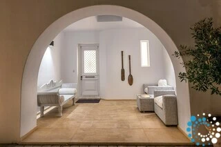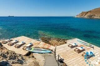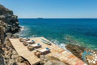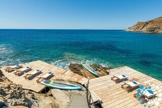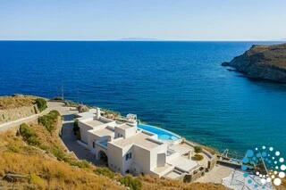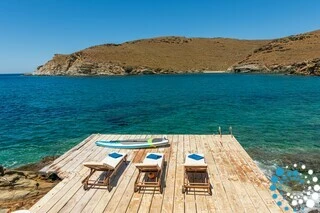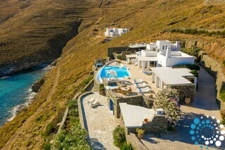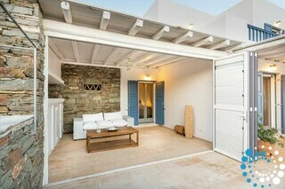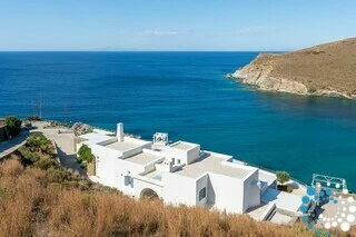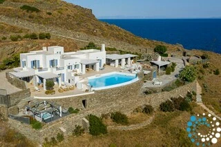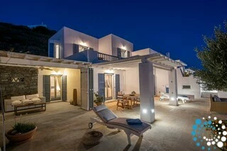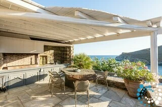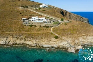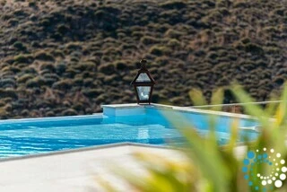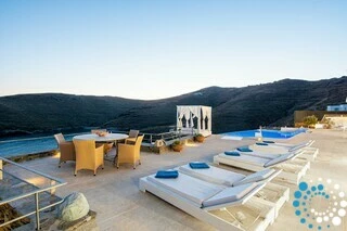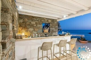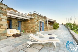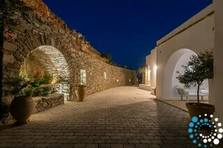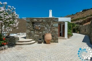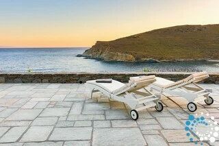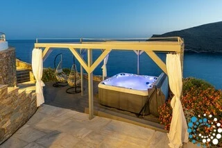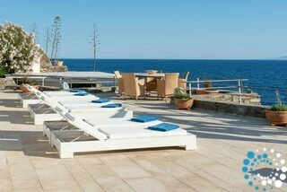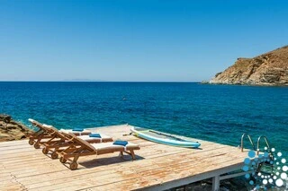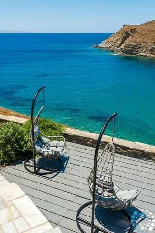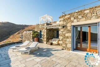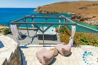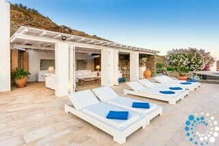 Villa Basilia a 500m2 is spread in multiple levels with traditional materials artfully mixed with modern touches of pure luxury, emulating refined elegance. The serene combination of ocean and earthy hues complements the already existing beauty of the landscape. Intriguing exterior chill-out areas and hidden corners have been individually designed to maximize open-air tranquility. From the grand marble dining table, to the numerous loungers overlooking mesmerizing sea views and the multi-level terraces, one will have a hard time choosing a favorite outdoor spot. With more than ten outdoor spots for stylish dining and tranquil lounging, there is a magic corner for everyone here. Add to that, the outstanding views of Southern Syros and luscious amenities so you will never want to say goodbye