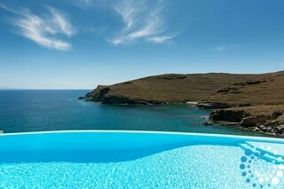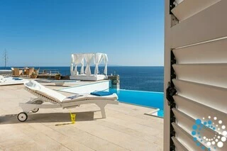 If you have not experienced swimming in a zero-edge pool, then prepare yourself for a one of a kind experience. Built on a gentle slope with sensational views, this 100m2 infinity pool is the definition of bliss. For the wild at heart, there is a private path leading down to the waterfront, in a rocky majestic scenery for witnessing unprocessed nature. Dive in the crystal clear blue waters and indulge in freshness and happiness.