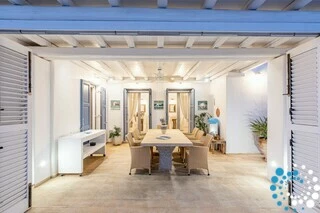 Guest House: Completely isolated from the rest of the villa, with its own secluded entrance, the stunning guesthouse serves its purpose by providing lush living in total privacy. It features a generous double bedroom (200X200) or 2 single beds (100X200) depending your needs, a compact single bedroom, an adorable bathroom a small but fully equipped kitchen and a seating area with charming furnishings. A secluded refreshing veranda completes the autonomous and exclusive character of the guesthouse.