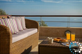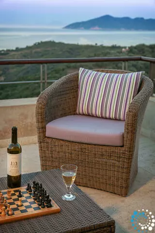 The interior design of villa Rosella is very sophisticated with walls and furniture painted in pale colors that harmoniously blend with the relaxing environment, offering our guests an enjoyable atmosphere. Several cozy sitting areas with amazing sea views directly above Mega Gialos beach will delight you in a unique Skiathos atmosphere, while offer moments of independence.