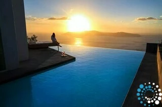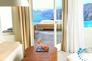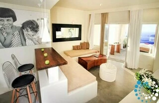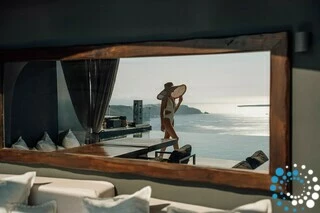 Chaque suite propose une approche différente de l’idée de « vivre ». Le blanc et le gris des structures du bâtiment marient de manière unique le blanc cycladique aux roches volcaniques noires de l’île. Chaque suite dispose d’une grande véranda avec piscine privée ou jacuzzi, offrant la splendeur du coucher de soleil et une vue magnifique sur la mer d’ouest en est, dans le luxe et la totale intimité.