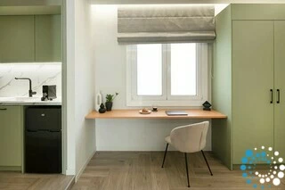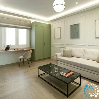 Entouré des échos de l’histoire et de la culture athéniennes, le bâtiment associe caractère urbain et design moderne. Les intérieurs sont soigneusement décorés dans des tons apaisants de vert forêt et d’olive, créant une atmosphère sereine qui reflète une vision sophistiquée de la vie citadine.