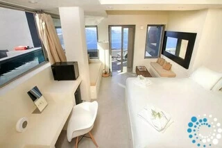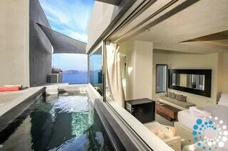 La Suite Gaia dispose d’un intérieur lumineux et spacieux offrant une vue spectaculaire sur la caldeira et les célèbres couchers de soleil de Santorin. Conçue avec des détails architecturaux uniques – tels que des surfaces en verre élégantes, un jacuzzi remarquable et une décoration raffinée – la suite incarne un luxe raffiné. Pensée pour allier confort et style contemporain, la Suite Gaia offre un cadre mémorable pour votre séjour à Santorin, combinant harmonieusement sophistication moderne et beauté naturelle de l’île.