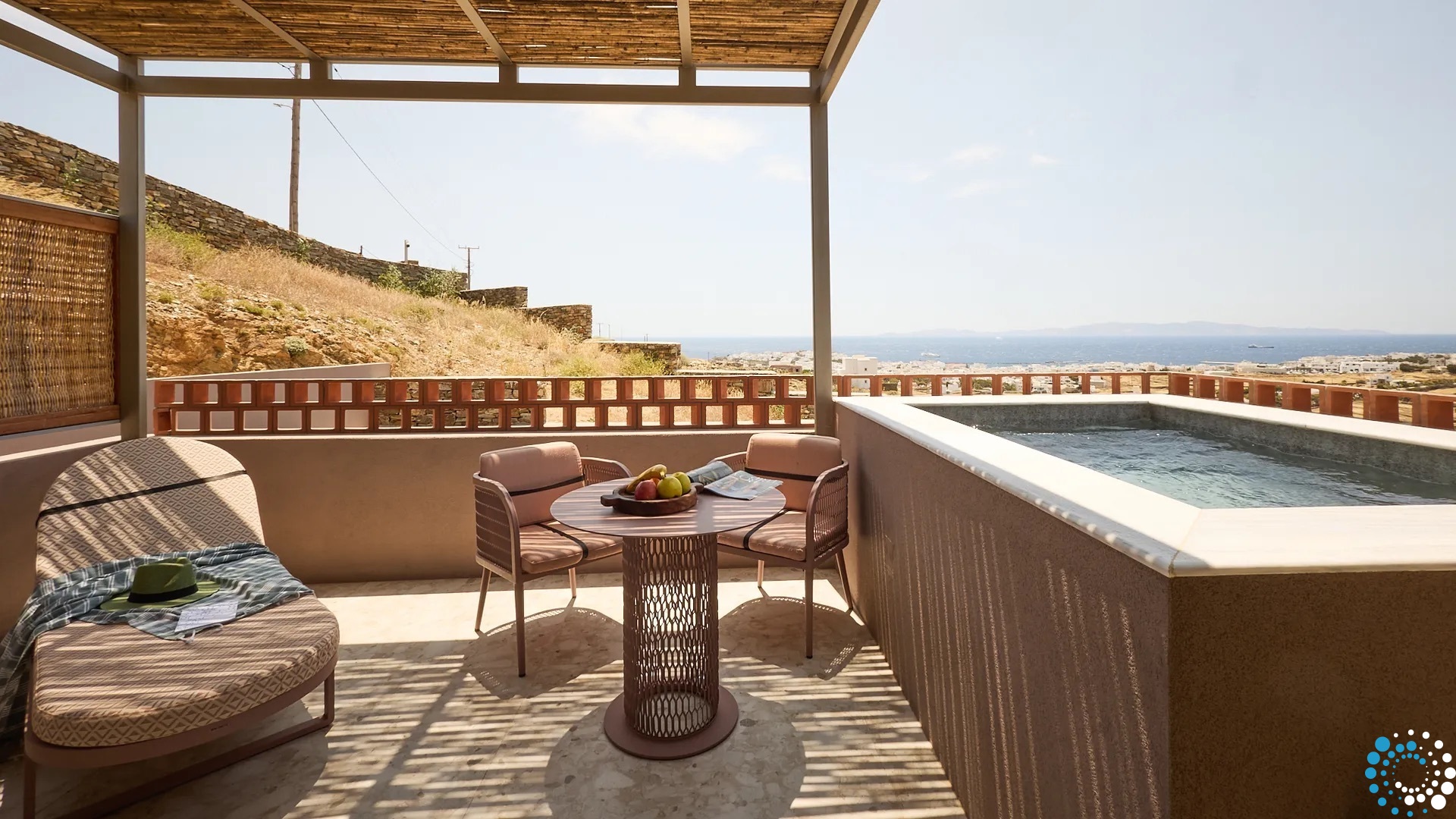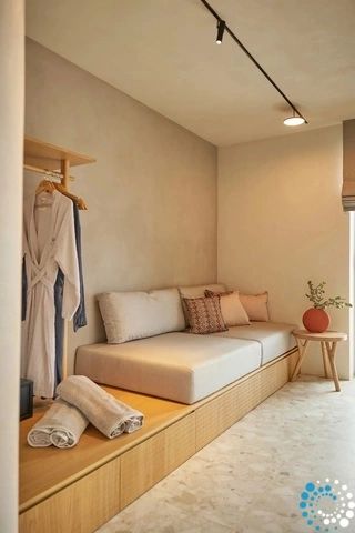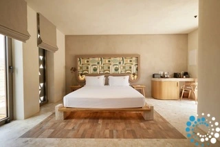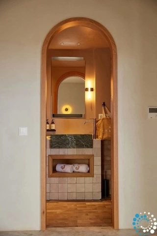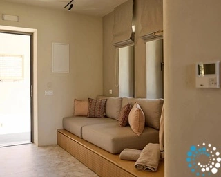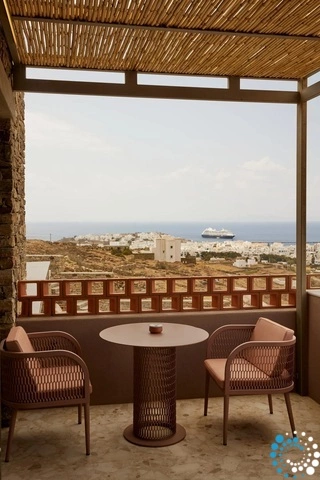 L’architecture de l’hôtel allie élégance minimaliste et tons naturels, célébrant l’art local et les riches traditions agricoles de l’île. Chaque détail s’harmonise avec l’atmosphère dynamique mais authentique de Tinos, offrant un sentiment d’ancrage à la fois contemporain et intemporel.