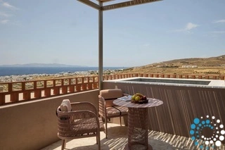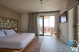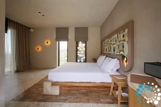 Profitez d’une nuit de sommeil bien méritée dans le confort d’un lit king-size, avec la possibilité d’un canapé-lit simple pour un troisième invité, le tout dans une esthétique soigneusement conçue, inspirée par le charme de Tinos. D’une superficie de 35 m², cette suite dispose d’une salle de bain élégante avec une douche à effet pluie somptueuse.