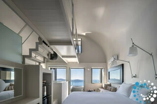 ExplorerSuite Kauma offre un design moderne exceptionnel et des vues imprenables sur la mer Égée, surplombant la caldera emblématique de Santorin et ses couchers de soleil. Cette suite propose une détente totale avec un jacuzzi intérieur ou extérieur. Les détails luxueux, tels que les plafonds en dôme avec passerelles de grenier, les pommeaux de douche illuminés et les accents en verre élégants, renforcent l’ambiance, tandis que des éléments surprenants de matériaux et de couleurs créent une atmosphère véritablement unique. Suite Kauma combine harmonieusement l’élégance contemporaine avec la beauté brute de Santorin pour un séjour inoubliable.