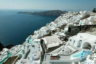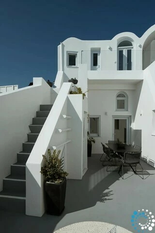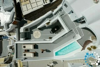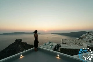 Perchée directement au-dessus du célèbre rocher de Skaros, la résidence offre des vues à couper le souffle à 180 degrés, s’étendant d’Oia au nord à Akrotiri au sud. Les invités peuvent savourer des panoramas spectaculaires du lever au coucher du soleil, faisant de cet endroit le lieu idéal pour profiter des légendaires couchers de soleil de Santorin.