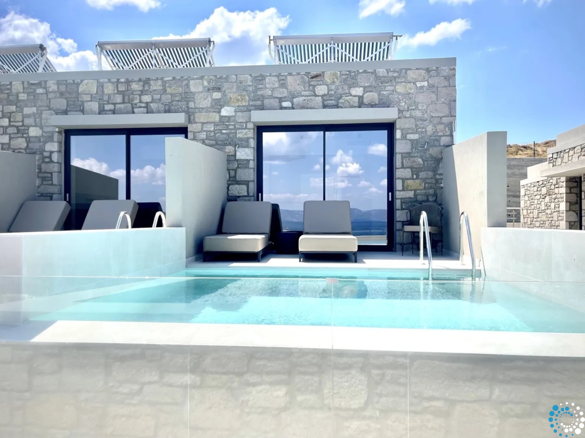 Profitez de la vue magnifique sur la mer Égée depuis le confort de votre terrasse privée et offrez-vous une baignade revitalisante dans votre piscine privée d’eau de mer.