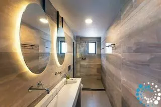 D’une superficie de 75 m², la villa comprend une salle de bains complète et un demi-bain pratique au niveau de la piscine. Les intérieurs sont soigneusement aménagés avec une palette apaisante de gris et de turquoise, tandis que les meubles en teck et en bambou créent une ambiance contemporaine et détendue, enrichie de touches modernes et de tout le confort nécessaire.