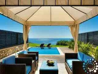 Située en bord de mer, cette villa élégante offre des vues à couper le souffle sur la mer Méditerranée et la baie environnante. Conçue pour le confort et la détente, elle peut accueillir jusqu’à quatre adultes, avec un lit queen-size, un canapé-lit double et un berceau.