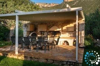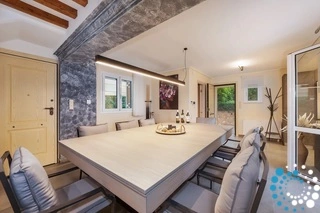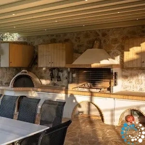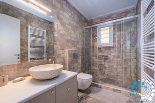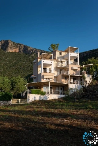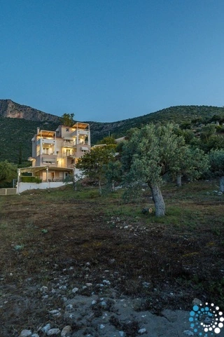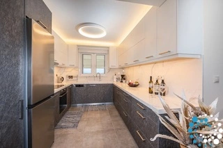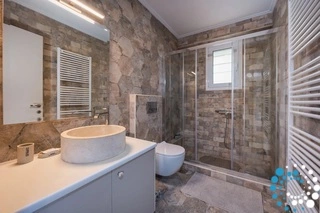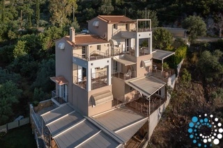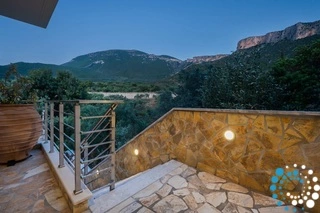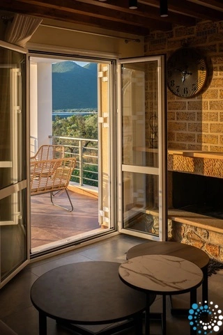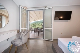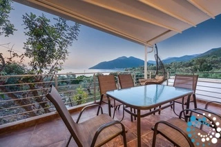 Les deux étages sont ornés de carreaux de haute qualité, et chaque pièce s’ouvre sur de vasts balcons et vérandas offrant des vues panoramiques sur la mer et les montagnes. Profitez de levers de soleil magiques, d’une nature sereine et de l’air frais depuis le confort de votre retraite privée. La climatisation moderne dans toute la villa la rend parfaite pour une résidence toute l’année.