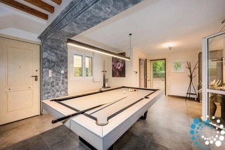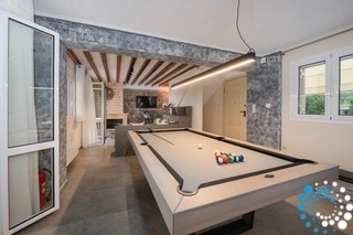 Le deuxième étage est un havre en plan ouvert. Détendez-vous dans le spacieux salon avec télévision ou préparez de délicieuses créations culinaires dans la cuisine entièrement équipée, comprenant un lave-vaisselle, un réfrigérateur, un four, une cuisinière, une machine à expresso et à café filtre, un mixeur à frappe et une bouilloire. Rassemblez-vous autour de la grande table à manger, qui peut facilement se transformer en table de billard pour un divertissement sans fin. Un WC complète cet étage pour plus de commodité.