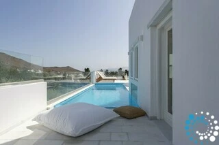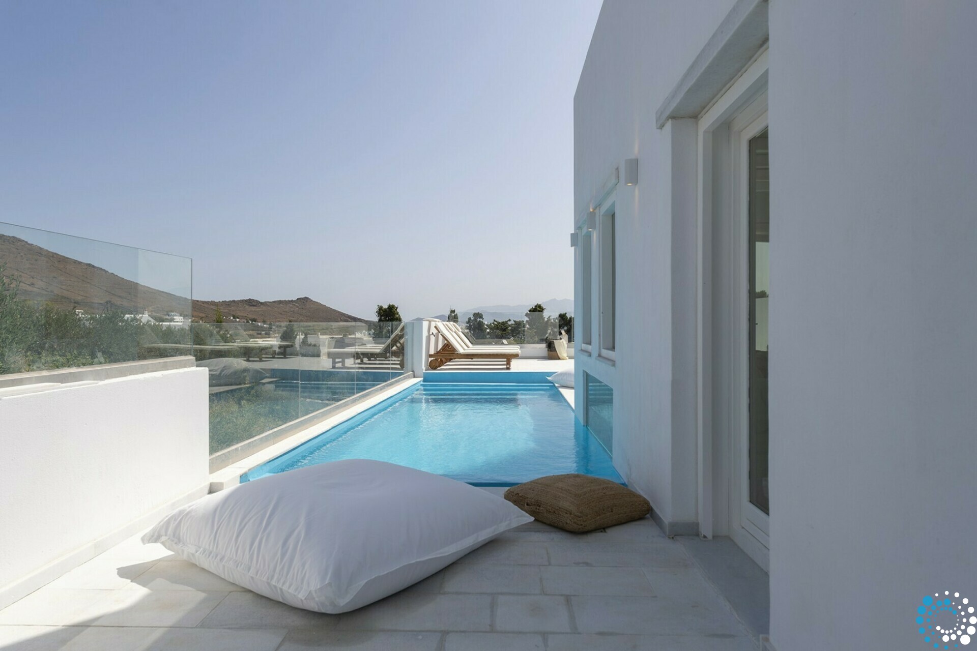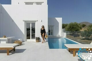 Située dans un cadre tranquille avec une vue imprenable sur le charmant port de Piso Livadi et face à l’île de Naxos, Villa Anemos est l’une des trois villas disposées en amphithéâtre dans le complexe. À seulement cinq minutes à pied de Piso Livadi et tout aussi proche des eaux primées du Blue Flag de Logaras Beach, les villas offrent à la fois commodité et sérénité. Chaque villa dispose d’une piscine privée et garantit une intimité totale. Depuis les terrasses spacieuses, les clients peuvent profiter de panoramas à couper le souffle sur la mer Égée. À l’intérieur, il est possible de préparer ses propres repas, et le petit-déjeuner peut être fourni sur demande moyennant un supplément.