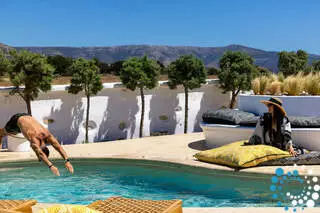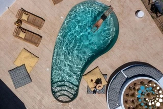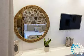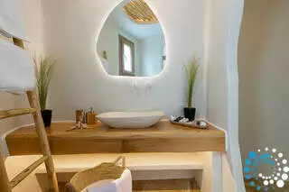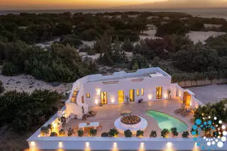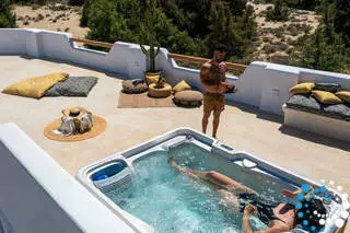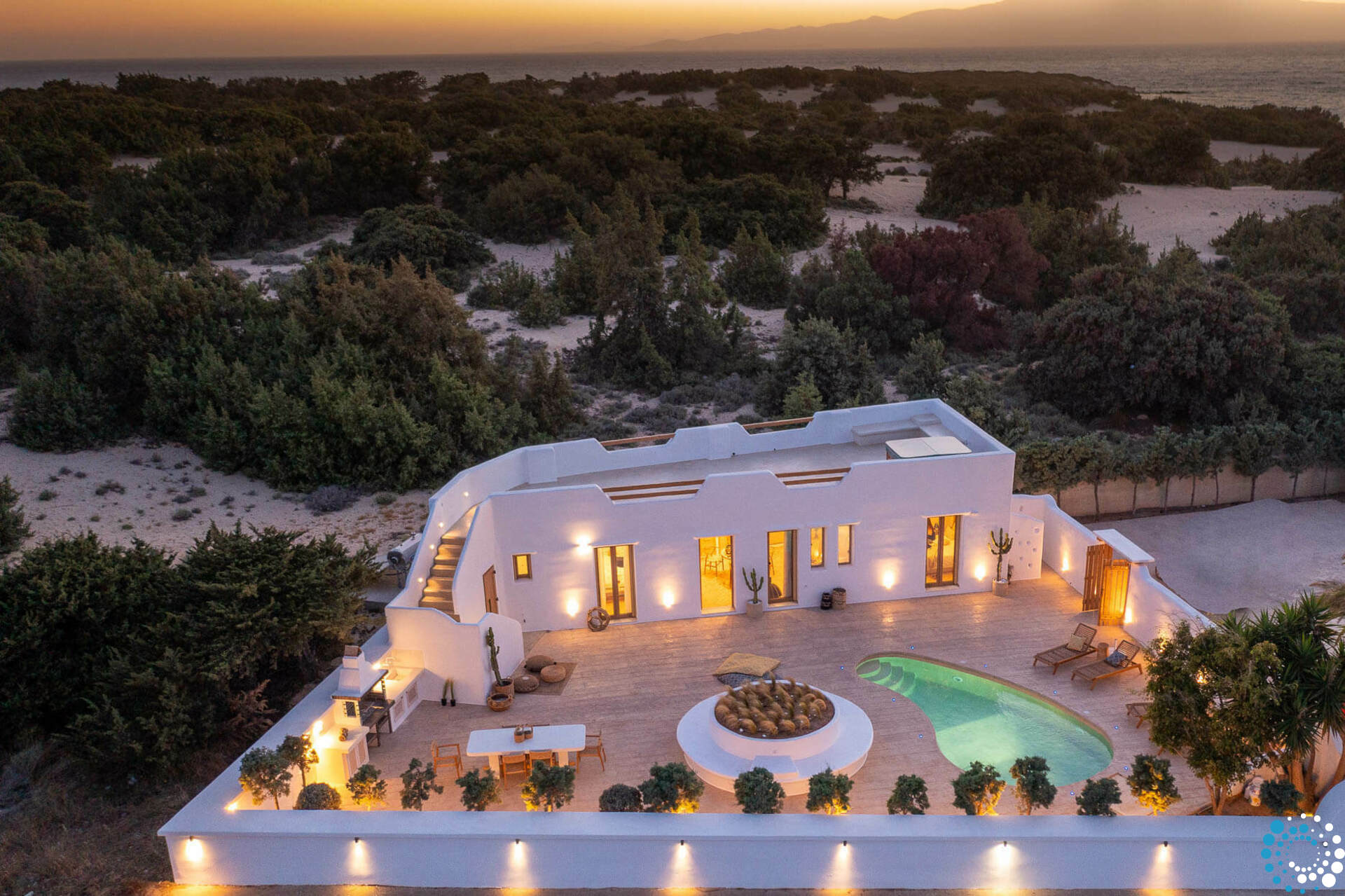 Un escalier extérieur entoure la villa et mène au toit, où vous pourrez vous plonger dans le sable doré de Naxos et admirer la vue imprenable sur les plages cristallines de l’île.
