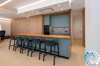Le salon est chaleureux et accueillant, parfait pour se détendre, regarder la télévision ou passer du temps ensemble. La cuisine est entièrement équipée avec tout le nécessaire pour préparer des repas, qu’il s’agisse d’un dîner complet ou d’une collation légère, ce qui est particulièrement pratique pour les familles et les groupes.