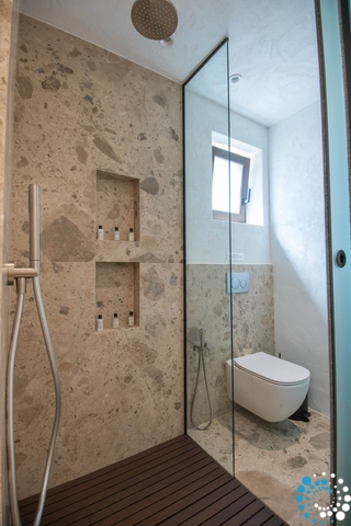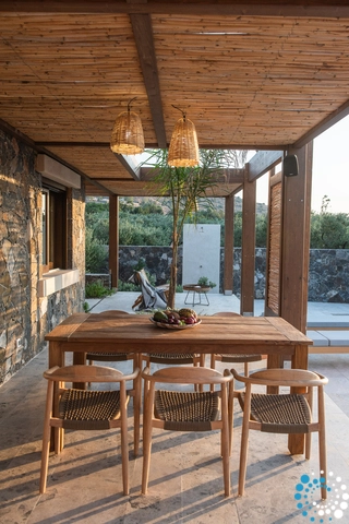 Inspirée par la légendaire pierre de Naxos, abondante à Elounda et dans les environs, autrefois utilisée par les guerriers anciens pour aiguiser leurs lames, la villa est empreinte d’un sentiment d’authenticité intemporelle.