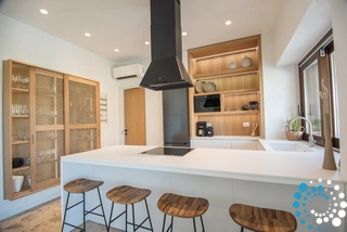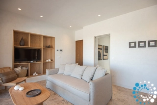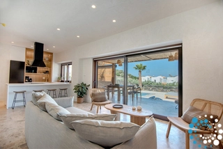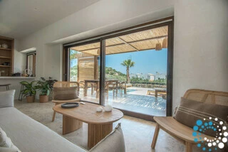 Le salon élégant en plan ouvert, baigné de lumière naturelle, est parfait pour se détendre ou se divertir, à l’intérieur comme à l’extérieur. Les salles de bains en marbre sont équipées de produits de toilette haut de gamme, de peignoirs, de chaussons et de serviettes de piscine. La cuisine entièrement équipée est idéale pour tout, d’un petit-déjeuner rapide à des repas préparés par un chef, reflétant à la fois luxe et fonctionnalité.