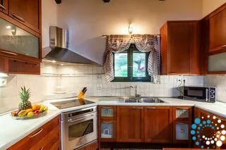 À l’intérieur, vous trouverez quatre chambres magnifiquement aménagées avec climatisation, un espace salle à manger spacieux et une cuisine entièrement équipée avec four, idéale pour préparer vos plats préférés. Détendez-vous dans le salon avec une télévision à écran plat ou profitez d’un verre sur votre terrasse privée.
