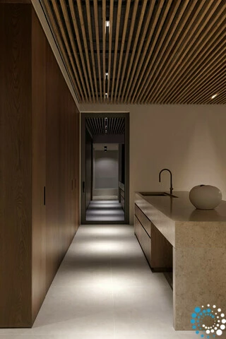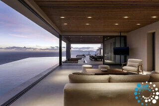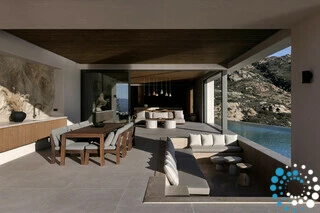 The upper level hosts a spacious open-plan living area (68 sqm) with lounge, dining area, and open kitchen, seamlessly connected to the outdoors. Large terraces (128 sqm) with a 112 sqm infinity pool, outdoor dining, and lounge areas create the perfect setting for relaxation and entertaining. A private suite on this level includes an en-suite bathroom and a private 15 sqm pool.