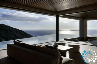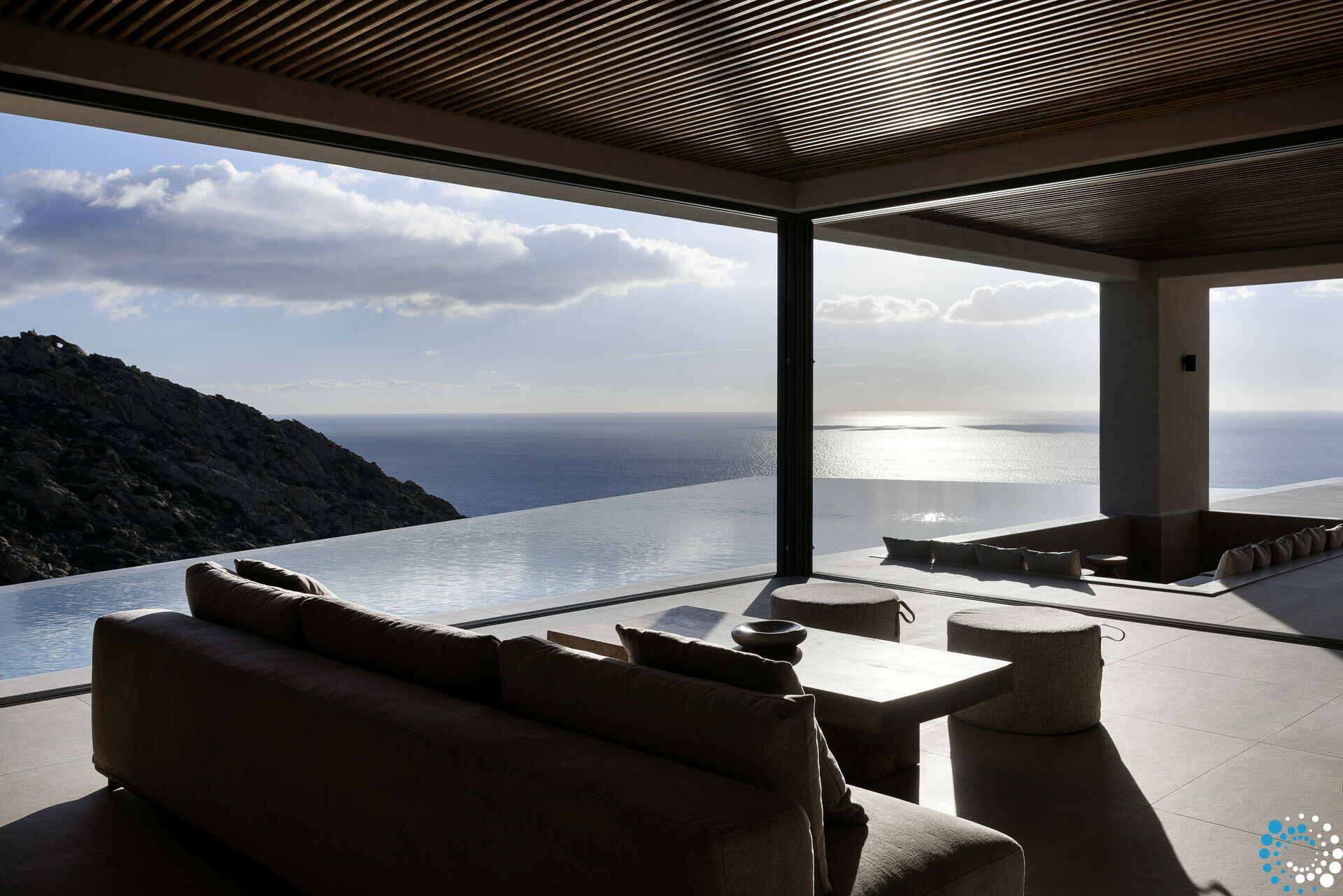 From sunrise to sunset, the villa offers breathtaking panoramic views over the Aegean Sea.