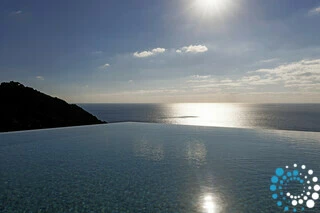 The infinity pool appears to merge seamlessly with the sea, creating a striking visual experience that enhances every moment spent outdoors.
