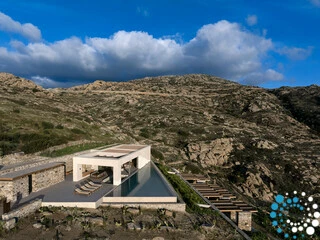 The villa is situated on a peaceful hillside of Ios enjoying a privileged position that combines seclusion with easy accessibility. Its elevated setting ensures uninterrupted views over the Aegean Sea while remaining close to the island’s key destinations.