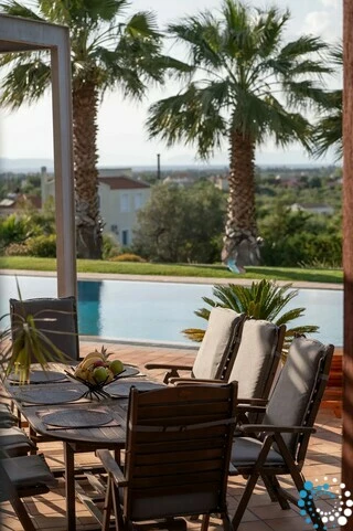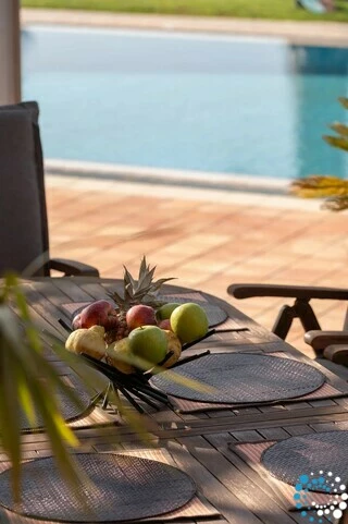 À l’intérieur, la villa dispose de quatre chambres magnifiquement aménagées et de quatre salles de bains modernes, ainsi que d’une cuisine entièrement équipée avec tout le nécessaire pour une préparation des repas en toute autonomie, notamment un réfrigérateur, un four, un lave-vaisselle et une machine à café. Le salon accueillant, avec cheminée et télévision à écran plat, crée une atmosphère chaleureuse pour des soirées partagées, tandis que les espaces repas intérieurs et extérieurs permettent de savourer les repas confortablement et avec vue. Des équipements pratiques tels que la climatisation, le Wi-Fi gratuit, des intérieurs insonorisés, un lave-linge et un sèche-linge, ainsi qu’une sélection de jeux de société et de puzzles garantissent un séjour fluide et adapté aux familles.