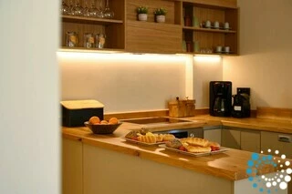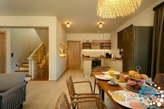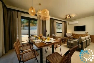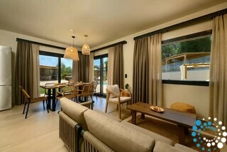 Villa Eikona peut accueillir jusqu’à huit personnes et convient parfaitement aussi bien aux séjours intimes qu’aux séjours en famille ou entre amis. Les intérieurs associent design contemporain, textures chaleureuses et finitions raffinées, offrant un séjour placé sous le signe du confort et du luxe discret.