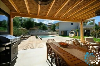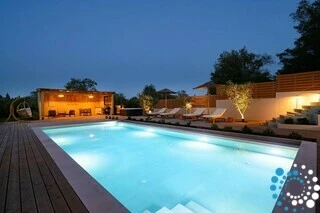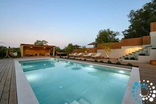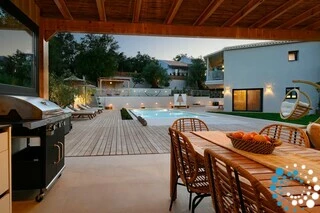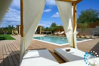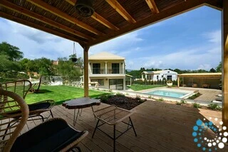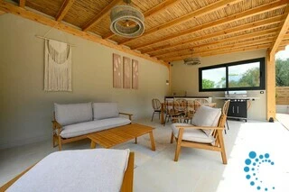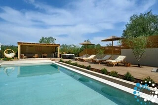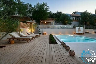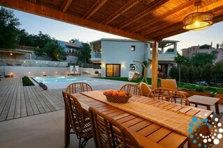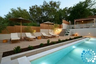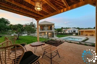 L’un des points forts de Villa Eikona est sa piscine privée chauffée, véritable cœur de la vie en extérieur. Les journées s’écoulent sous le soleil chaleureux de Corfou, avec des baignades rafraîchissantes et de longs moments de détente au bord de la piscine tandis que la lumière du soir se reflète sur l’eau. De vastes terrasses entourent la propriété, créant une connexion fluide entre intérieurs raffinés et vie en plein air. Le résultat est une atmosphère méditerranéenne authentique : détendue, élégante et conçue pour des expériences mémorables.
