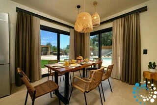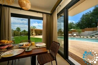 Entourée d’oliveraies luxuriantes et de végétation méditerranéenne, Villa Eikona dégage une atmosphère de calme et de discrétion. Le cadre constitue un sanctuaire naturel où les clients peuvent se déconnecter du quotidien et se reconnecter à des moments précieux. L’intimité est un élément essentiel de l’expérience, avec une disposition réfléchie et un environnement isolé créant une atmosphère d’exclusivité paisible, idéale pour les familles, les couples ou les groupes d’amis en quête de détente absolue. Chaque espace a été conçu pour évoquer la lumière, l’ouverture et une élégance sans effort.
