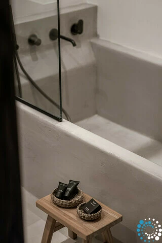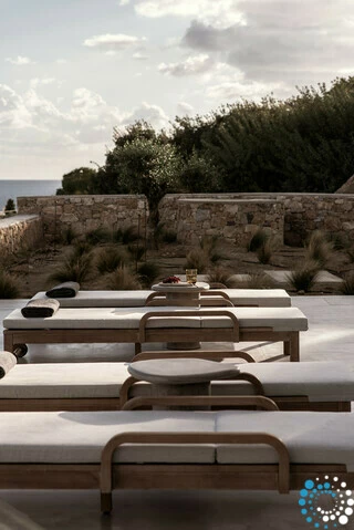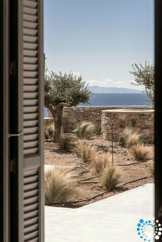 Sur le terrain, un ancien puits préservé et une petite chapelle blanche, faisant partie de l’histoire du lieu, apportent une touche d’authenticité et de patrimoine. Un espace dédié au yoga et à l’exercice invite à des matinées lentes de mouvement et de méditation, avec une vue panoramique sur la mer Égée.