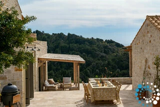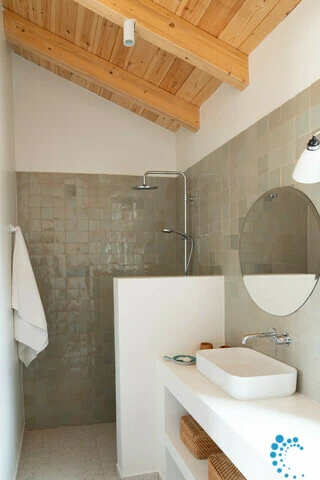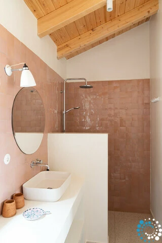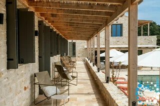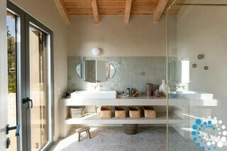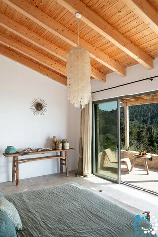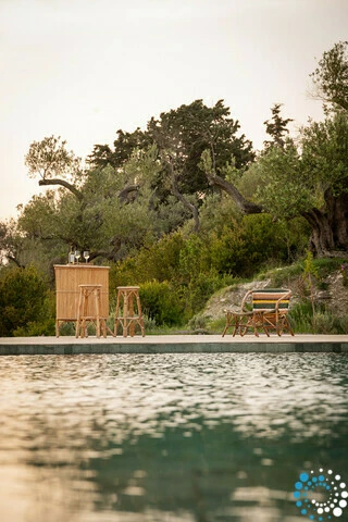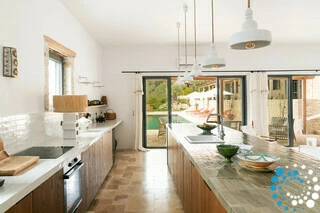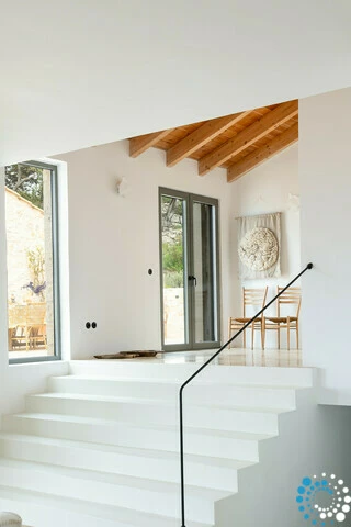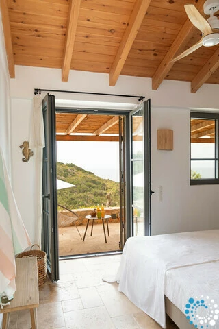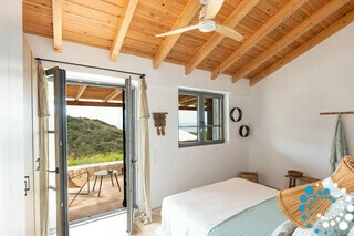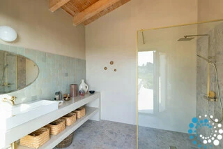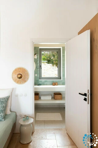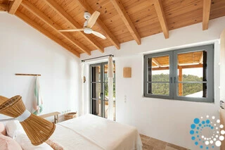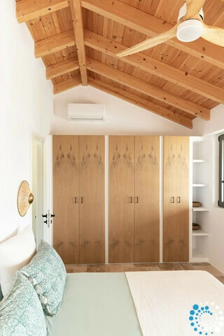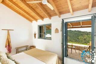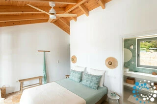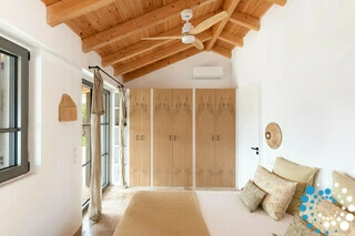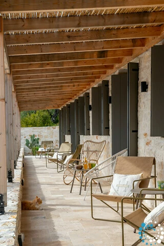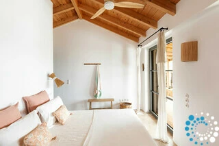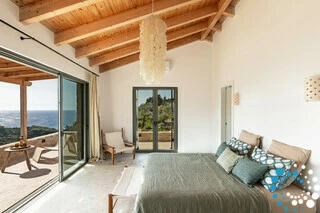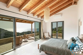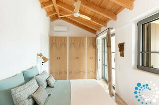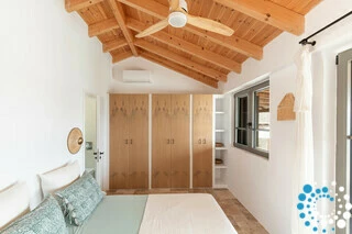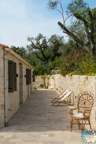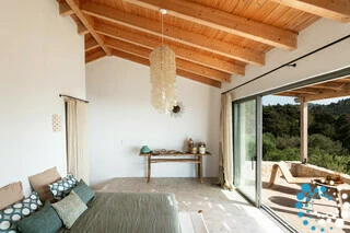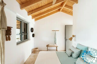 Un second bâtiment, relié avec soin à la maison principale par une terrasse, propose quatre belles chambres doubles, chacune avec un lit king-size et sa propre salle de douche en suite. Chaque chambre est conçue pour offrir intimité et confort, avec de nombreux rangements, une machine à café, une bouilloire et un mini-réfrigérateur, ainsi qu’un accès privé à la terrasse avec vue sur la piscine.