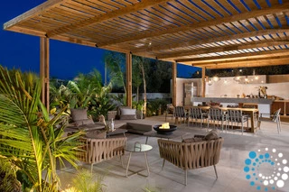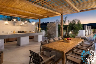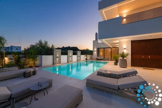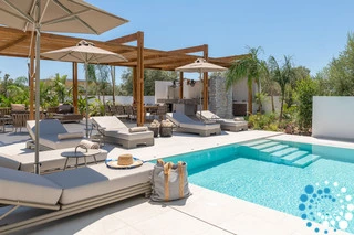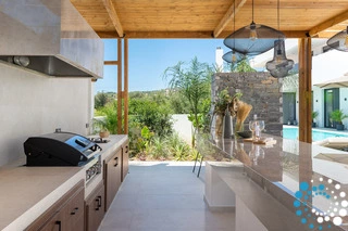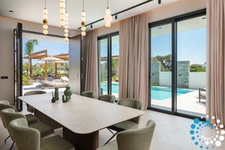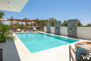 Dans cette villa, élégance, confort et intimité se combinent harmonieusement, offrant une escapade inoubliable à Rhodes. À l’extérieur, une magnifique oasis vous attend, avec une grande piscine privée entourée de transats et de parasols élégants — l’endroit idéal pour se détendre et profiter du soleil. La cuisine extérieure entièrement équipée, avec barbecue et vaste espace repas, est parfaite pour savourer des repas en plein air. À l’intérieur, la villa continue de séduire grâce à son design moderne et son espace ouvert. La cuisine entièrement équipée s’étend naturellement vers le coin repas et le vaste salon, où une grande Smart TV crée un cadre idéal pour se détendre et se divertir.
