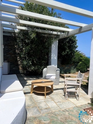 La villa se trouve juste avant l’entrée du village d’Ano Meria, sur la droite, face à la mer.