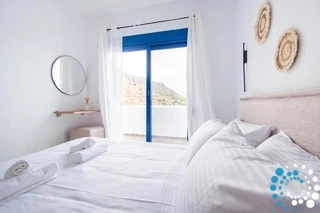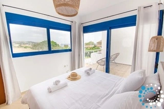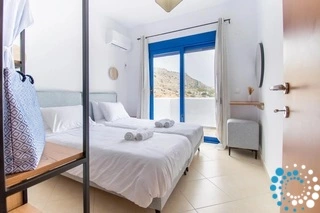 La villa dispose de trois chambres lumineuses et décorées avec goût. Une chambre comprend un lit double confortable avec vue sur la route, tandis que la seconde chambre double offre une jolie vue sur les collines environnantes. La troisième chambre est équipée de deux lits simples, ce qui la rend idéale pour des enfants ou des amis partageant la même chambre. Toutes les chambres bénéficient d’une belle lumière naturelle et sont conçues pour créer une atmosphère chaleureuse et reposante.