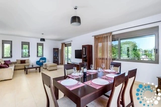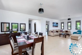 Au rez-de-chaussée, les hôtes trouveront une cuisine moderne entièrement équipée, idéale pour préparer aussi bien des collations légères que des repas complets. La villa propose également des espaces repas et salon confortables, ainsi qu’un espace de vie distinct habillé de tons chaleureux qui crée instantanément une sensation de sérénité et de convivialité. Le Wi-Fi gratuit est disponible dans toute la propriété, et des télévisions connectées sont présentes dans le salon ainsi que dans toutes les chambres pour se divertir à tout moment.