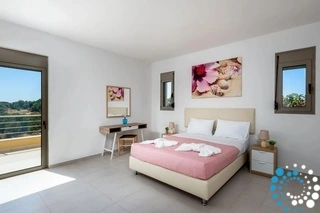 Conçue pour accueillir confortablement jusqu’à 12 personnes, la Villa Gambogi offre de vastes espaces de vie et des équipements haut de gamme. La cuisine moderne et entièrement équipée est parfaite pour préparer aussi bien des petits-déjeuners décontractés que des repas complets, et s’ouvre sur des espaces salle à manger et salon accueillants. Le salon chaleureux, décoré dans des tons élégants et raffinés, est équipé d’une télévision connectée et du Wi-Fi, garantissant détente et divertissement tout au long du séjour.