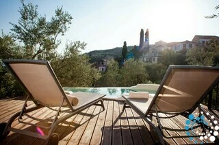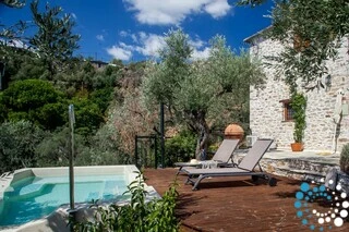 Au rez-de-chaussée de Villa Ivoni se trouve une chambre double avec salle de bain privative. De là, vous pouvez accéder directement à la mini-piscine, l’endroit idéal pour vous détendre pendant votre séjour. Villa Ivoni peut accueillir confortablement 2 à 3 personnes grâce au canapé-lit trois places situé à l’étage.