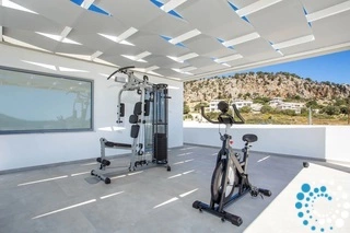Villa Keladon est un havre de luxe avec une piscine privée offrant une vue imprenable sur la mer, parfaite pour se détendre et profiter du soleil. La villa dispose d’une cuisine entièrement équipée, idéale pour préparer vos repas, ainsi que d’un spacieux salon avec télévision connectée, chaînes câblées et Netflix pour votre divertissement. Restez connecté grâce au Wi-Fi gratuit dans toute la propriété et profitez des rassemblements en extérieur avec un barbecue, un grand jeu d’échecs et du matériel de gym pour vos entraînements. Les chaises longues autour de la piscine créent un espace serein pour se détendre et profiter du paysage.