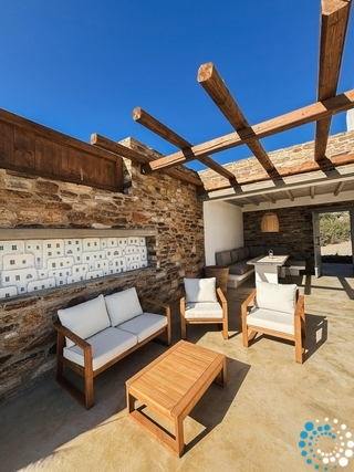 À l’extérieur, une véritable parenthèse de sérénité vous attend. Une généreuse piscine scintille sous le soleil grec, entourée de confortables transats parfaits pour de longues après-midis de détente. Un espace repas ombragé en plein air constitue l’endroit idéal pour savourer vos repas tout en admirant la beauté paisible des vignobles environnants.