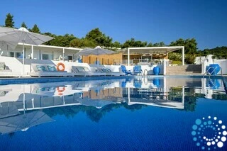 Découvrez les eaux cristallines de Halkidiki, à quelques pas de votre chambre. Notre plage privée, à seulement 120 mètres, offre des eaux calmes et invitantes, parfaites pour la baignade. Que vous vous détendiez au bord de la piscine ou que vous profitiez du soleil sur la plage, les parasols et transats gratuits garantissent un confort optimal sous le soleil grec.