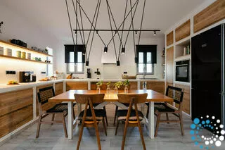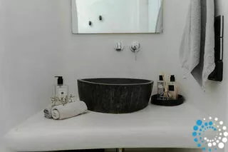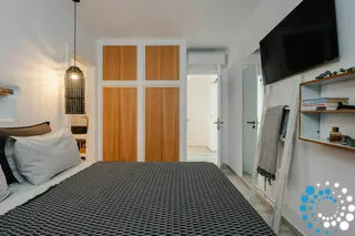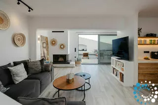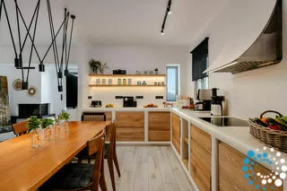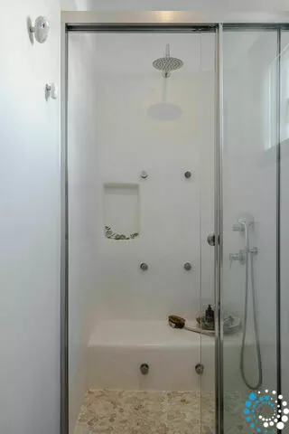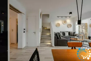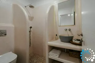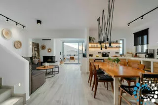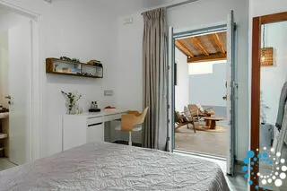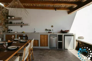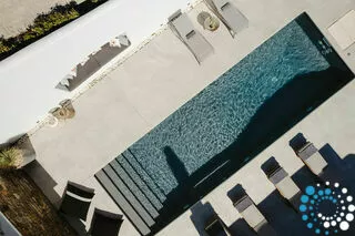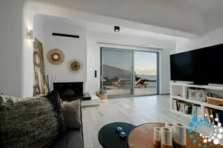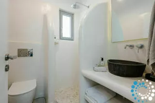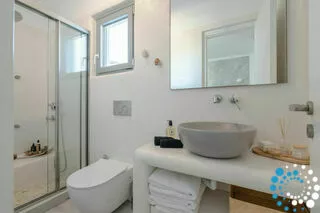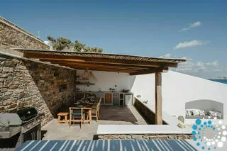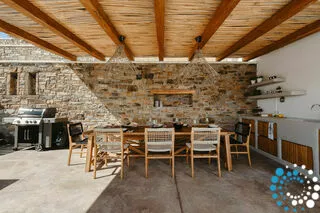 Le rez-de-chaussée comprend une entrée spacieuse, un salon et une salle à manger ouverts, une cuisine entièrement équipée, une chambre avec lit queen-size et salle de bain attenante, ainsi qu’une chambre avec lit double et salle de bain. À l’étage, il y a deux chambres : l’une avec un lit double et l’autre avec un lit king-size, toutes deux avec salles de bain attenantes. Une maison d’hôtes séparée, équipée d’un lit king-size et d’une salle de bain, est également disponible. Toutes les chambres sont climatisées. À l’extérieur, une grande véranda et un espace barbecue vous permettent de vous détendre, de prendre un café/un verre ou de savourer de délicieux repas. Les deux espaces sont ombragés par des pergolas en bois. Devant la villa se trouve une grande piscine privée avec des transats confortables, un pool-bar en pierre et une douche extérieure.
