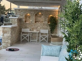 Pour plus de commodité, des services de location de vélos et de voitures sont disponibles sur place, facilitant la découverte de l’île. La plage de Logaras est située à seulement 400 mètres, tandis que la plage de Pounta se trouve à 1,1 km de la villa. L’aéroport national de Paros est à 19 km, assurant un accès facile aux voyageurs.