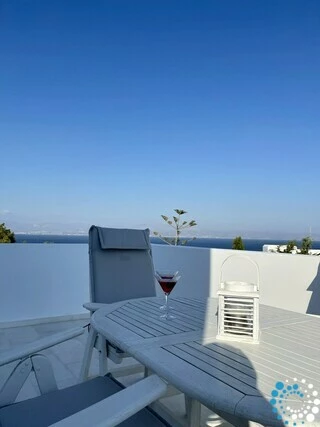 Depuis la maison, les vues sont tout simplement époustouflantes. Depuis la terrasse, vous pourrez admirer de vastes panoramas sur la mer Égée, avec l’île de Naxos à l’horizon – un cadre idéal pour des moments inoubliables.