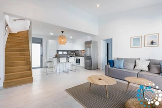 L’intérieur de la villa est élégant, chaleureux et accueillant, s’harmonisant parfaitement avec l’environnement paisible. Au rez-de-chaussée, vous trouverez trois chambres magnifiquement aménagées avec des lits doubles confortables et trois salles de bains, dont deux en suite. Une charmante chambre mansardée sous le toit dispose d’une salle de bains privée avec douche, offrant un refuge cosy.