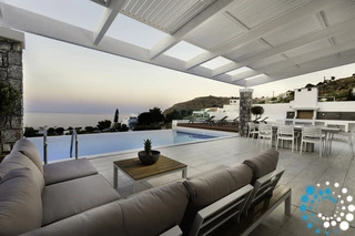 Sortez sur la terrasse principale, aménagée avec des transats confortables et une grande table à manger pour des repas en plein air et des moments inoubliables. La piscine luxueuse (8x5 mètres) est idéale pour se rafraîchir et profiter du splendide soleil de Lindos. Entre avril et novembre, les invités peuvent profiter de la piscine chauffée pour plus de confort. Le barbecue intégré, la douche extérieure et la terrasse ensoleillée complètent l’expérience de vacances parfaite.